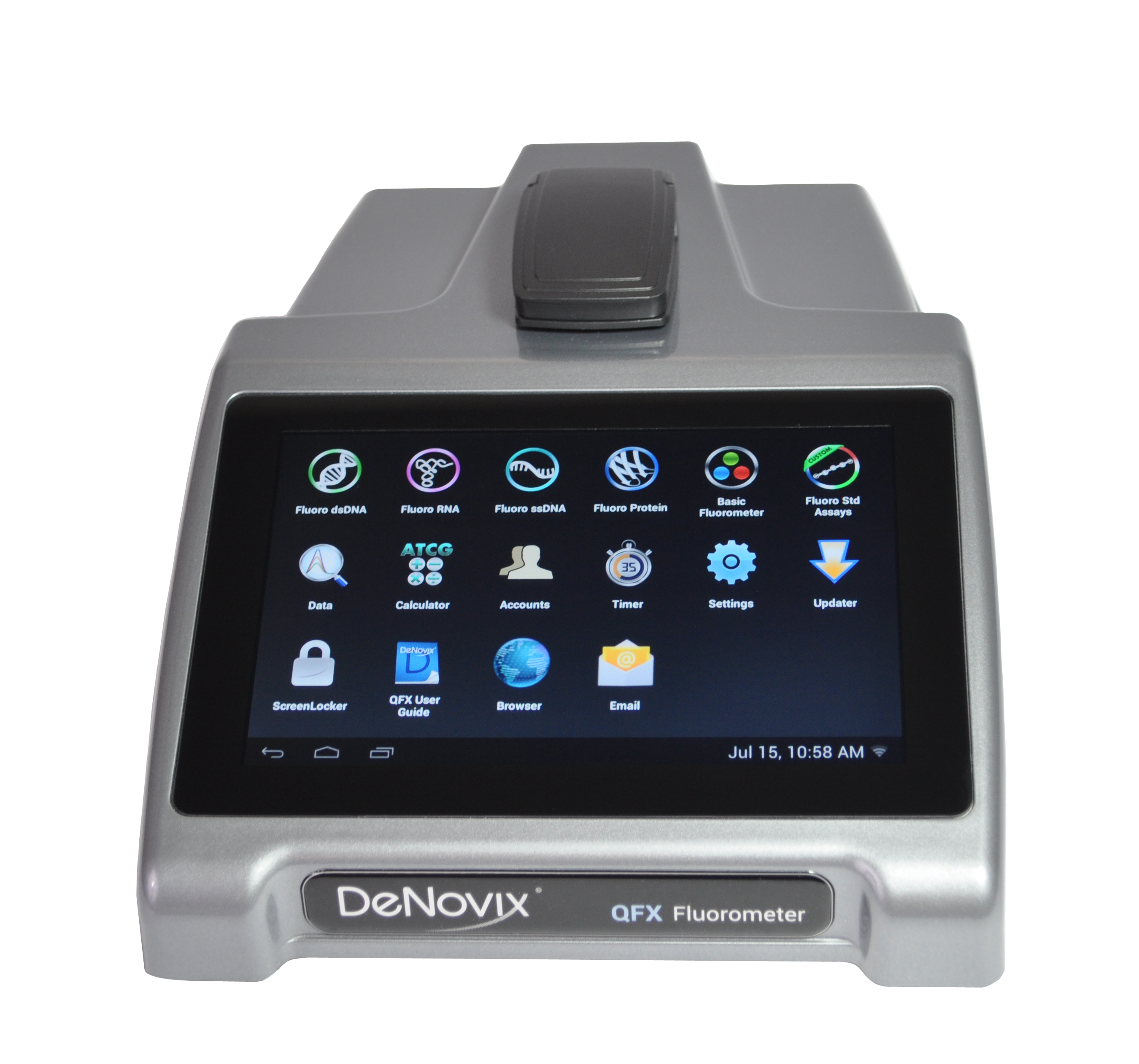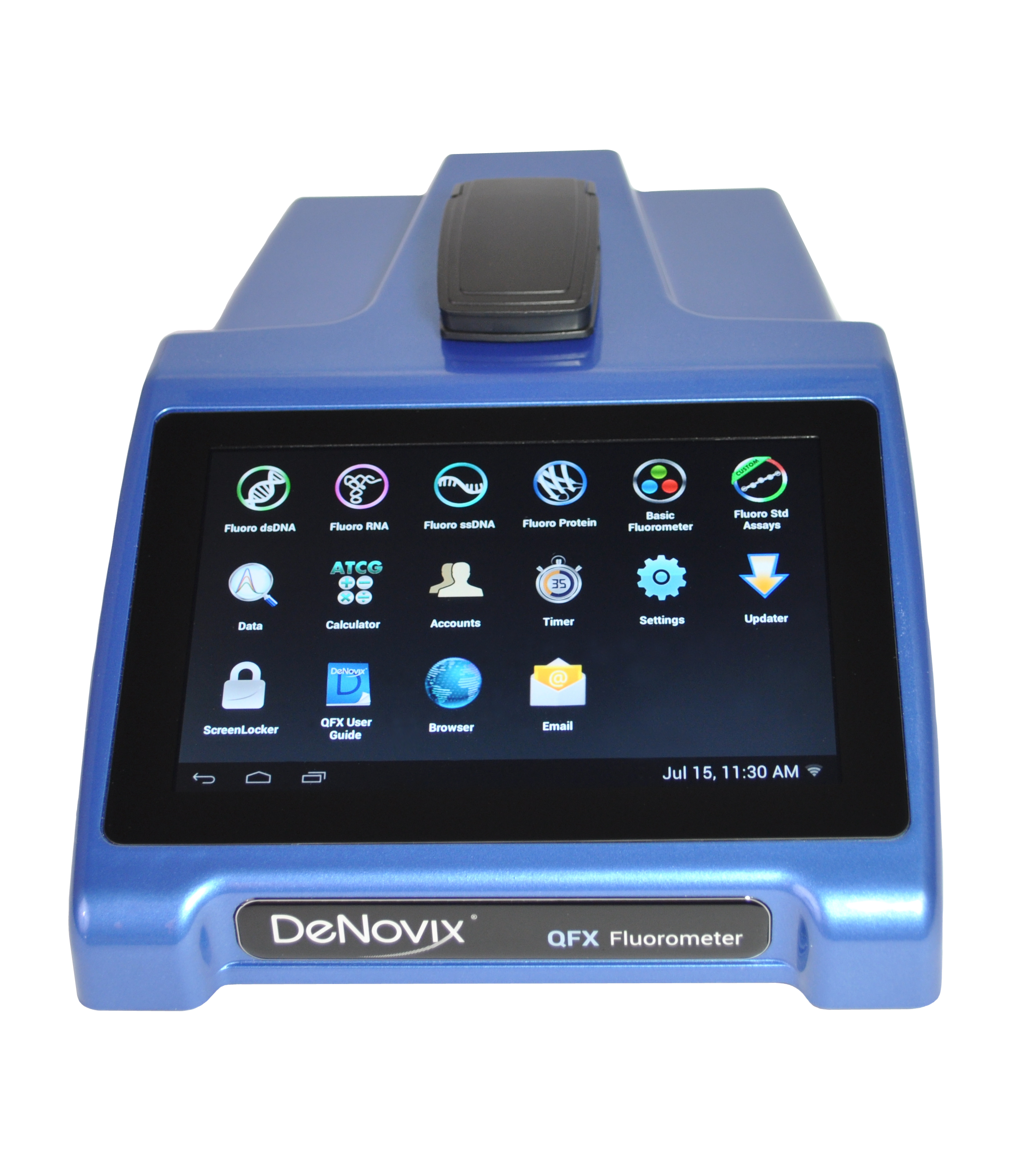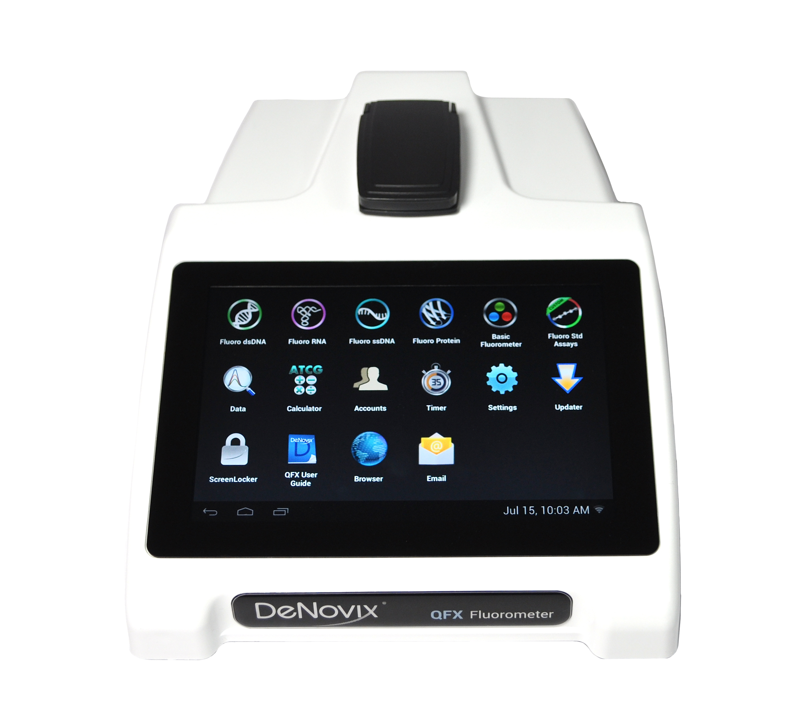 Manejo fácil e intuitivo: gracias a las EasyApps®, usar el Fluorímetro QFX se convierte en una tarea rápida y sencilla de aprender. El software del instrumento se basa en el sistema operativo Android® y gracias a la gran pantalla HD no es necesario instalar un software en el ordenador.